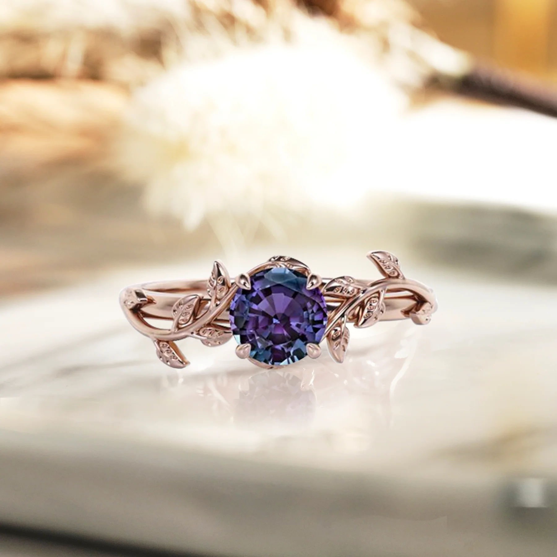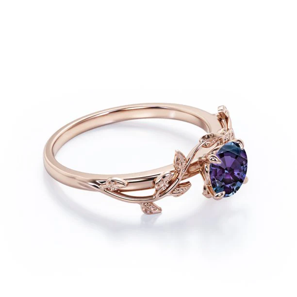 1 Ct Round Lab Alexandrite Vine Engagement Ring