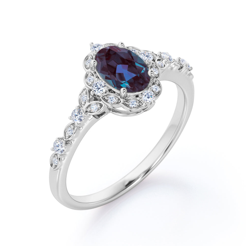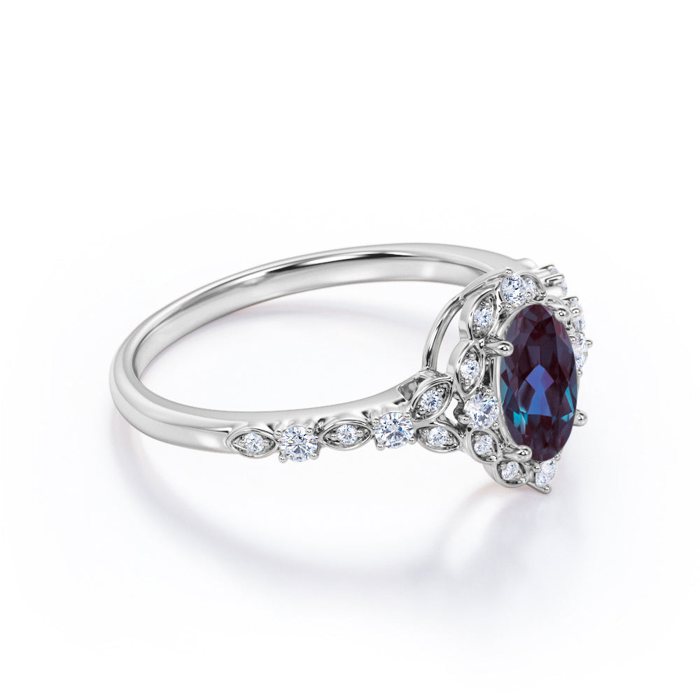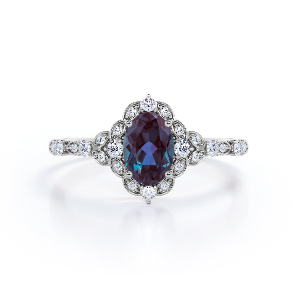 1.45 Ct Oval Lab Alexandrite Art Deco Engagement Ring