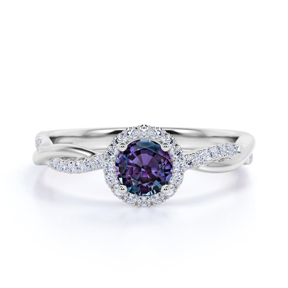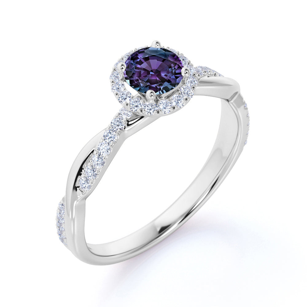 Simple Halo 1.50 Carat Round Cut Created Alexandrite and Diamond Infinity Pave Engagement Ring