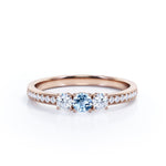 1.10 ct Round Aquamarine Pave Engagement Ring