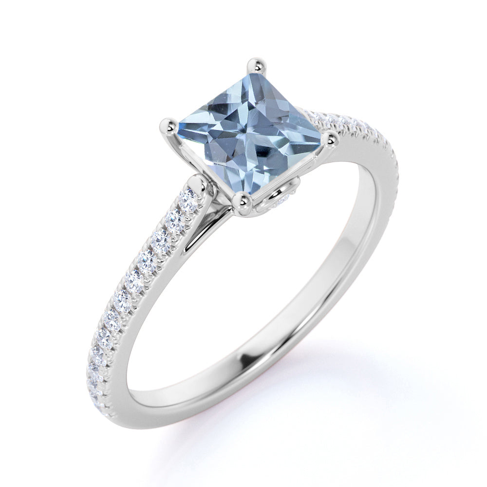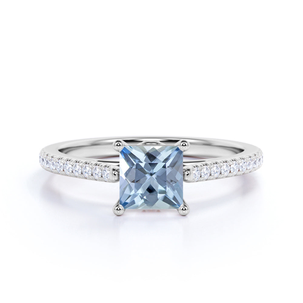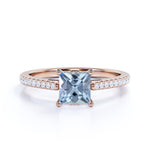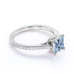 Pave 1.50 ct Princess Aquamarine Engagement Ring