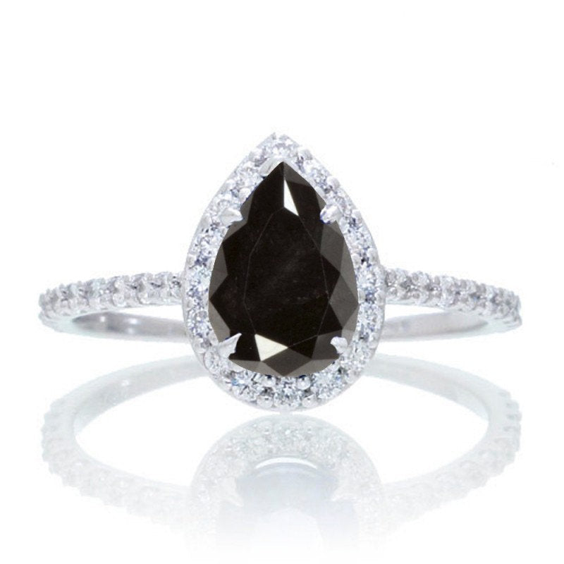 1.25 ct Pear Lab Black Diamond Halo Engagement Ring