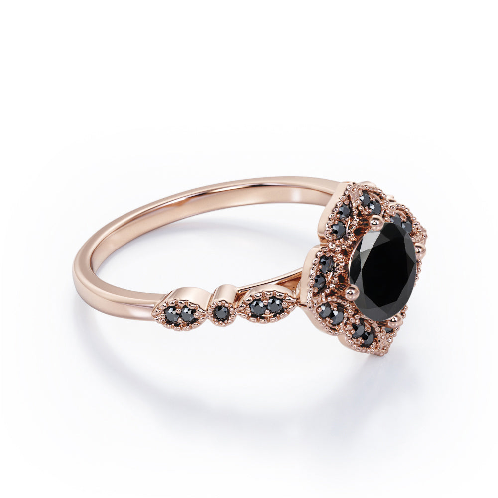 1.5 ct Round Lab Black Diamond Vintage Flower Engagement Ring