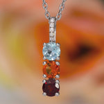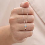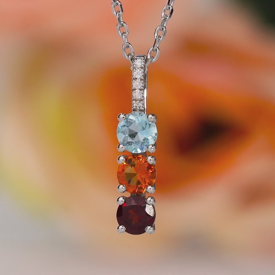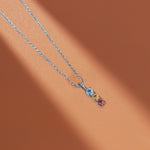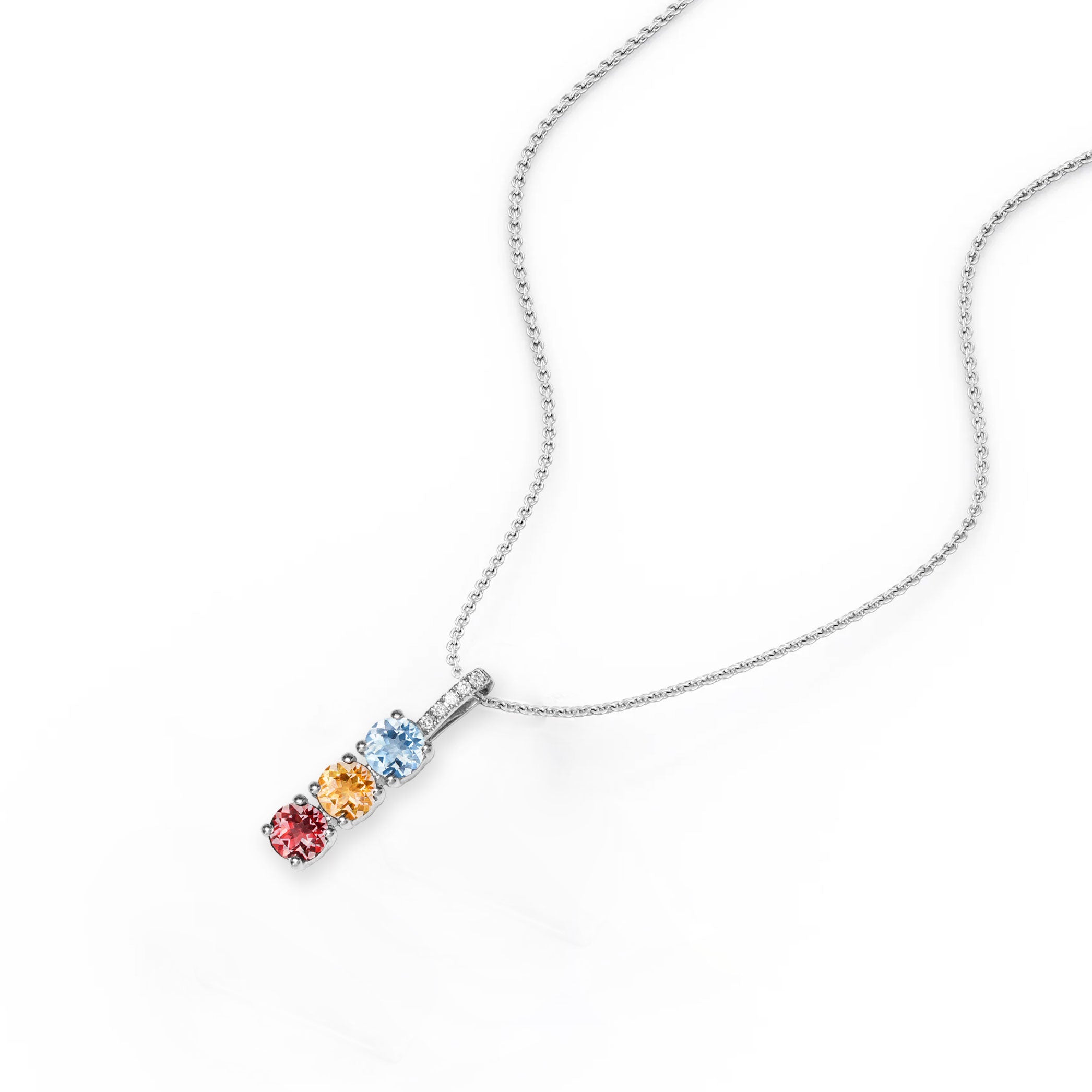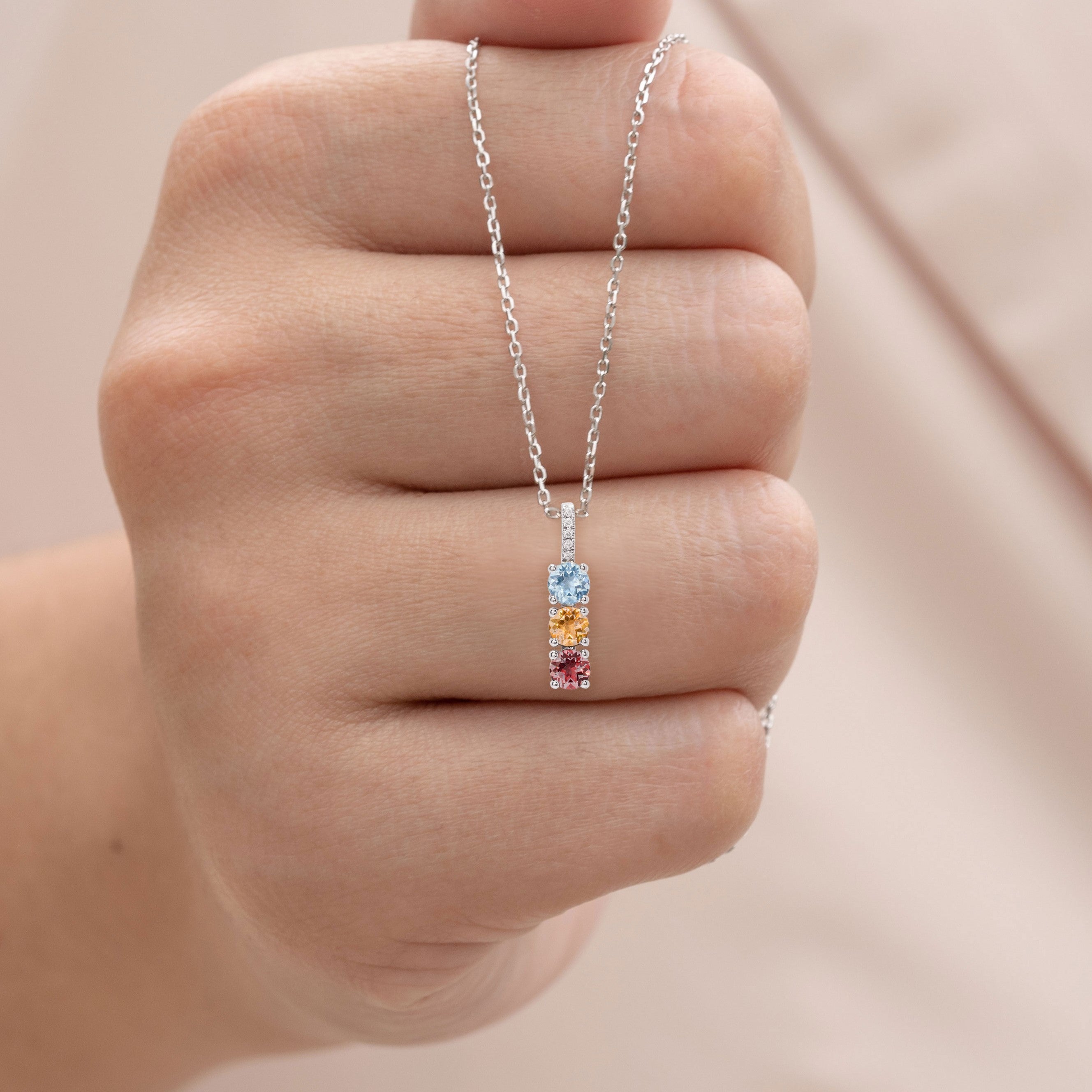 Perfect Vertical Multi Birthstone and Moissanite Bar Pendant Necklace for women in 18k white gold over silver