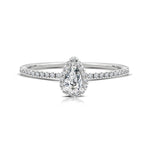 Start your eternal love story with this Vintage 1 ct TDW Pear Cut Diamond Halo Engagement Ring in 10K White Gold. Perfect for lovers of classic and antique jewelry, this ring features a 0.25 carat natural Diamond center stone and 0.30 carats of round brilliant cut side stones. The enchanting play of light and unique design symbolize your unique love story. Meticulously handcrafted by our passionate artisans, it comes with 30-day full refund policy, 30-day free resizing, and a limited 6-month warranty.