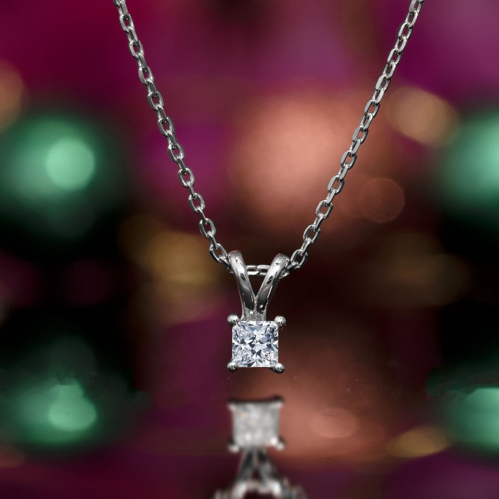 Beautiful 0.25 Carat Princess Cut Certified Lab Diamond Pendant Necklace In 18K White Gold Plating Over Silver