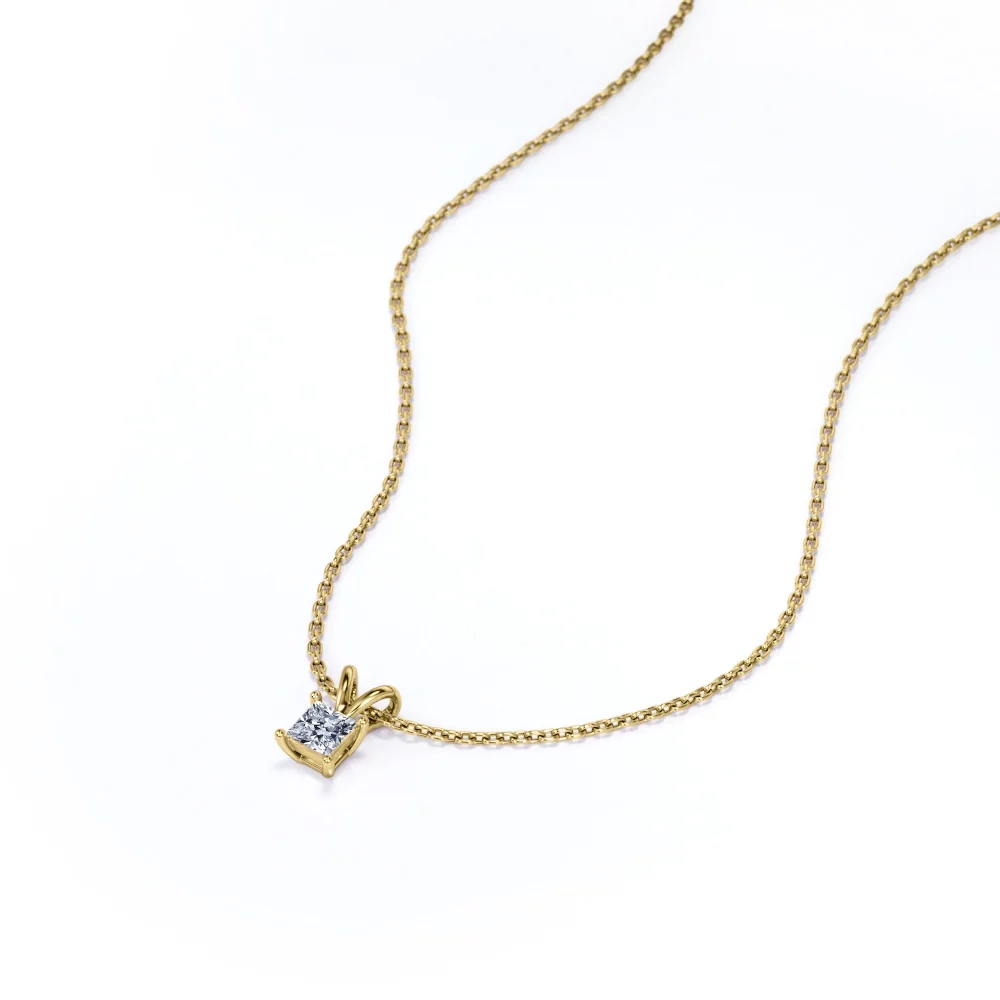 Capture your eternal love with this Beautiful 0.25 Carat Princess Cut Certified Lab Diamond Pendant Necklace In 18K White Gold Plating Over Silver. Skillfully hand-cut into a nice princess cut by our skilled jewelers, this astounding Certified Lab Diamond solitaire necklace showcases 0.25 carat Certified Lab Diamond on solid white gold plating over silver. Special and non-traditional, this pendant necklace with Certified Lab Diamond is well-suited for those who are not quite into normal lifestyle. With its splendor, this pendant necklace with a Certified Lab Diamond stone will absolutely enhance every style of its wearer. Hanging in a silver cable chain that is secured by a spring ring clasp, this pendant necklace with a Certified Lab Diamond stone is beautiful and accessible since it is available at an affordable price. If you are looking for a special gift for your friends or your better half, this pendant necklace with a Certified Lab Diamond stone can be a perfect gift for any occasion like Valentine's day, mother's day or anniversary. Also, this Certified Lab Diamond necklace can be customized, either in 18K white gold plating over silver, 18K rose gold plating over silver, or 18K yellow gold plating over silver, upon customer request. Let's fulfill your love story with this Certified Lab Diamond pendant necklace and, surely, she will not regret it.