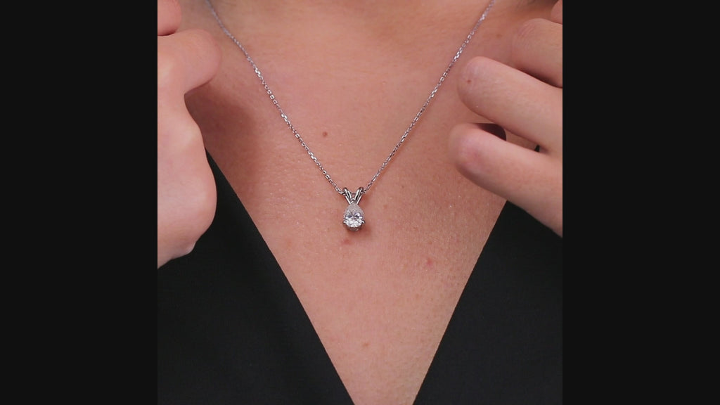 Be shinily standout from the crowd with this Captivating 0.25 Carat Teardrop Certified Lab Diamond Pendant Necklace In 18K White Gold Plating Over Silver . Skillfully hand-cut into a nice pear cut by our experts in lapidary, this exceptional Certified Lab Diamond necklace features 0.25 carat Certified Lab Diamond on solid white gold plating over silver. Distinctive and extraordinary, this Certified Lab Diamond solitaire pendant necklace is perfect for those who would love to express their charisma and uniqueness. Reflective properties of this Certified Lab Diamond solitaire pendant necklace will absolutely enhance every style of its wearer. Hanging in a silver cable chain that is secured by a spring ring clasp, this Certified Lab Diamond pendant necklace is beautiful and accessible since it is available at a reasonable price. This pendant necklace with a Certified Lab Diamond stone, the birthstone pendant necklace for April, symbolically representing love and commitment, will be the greatest choice you will ever make. Also, this pendant necklace with Certified Lab Diamond can be customized to your own choice of metal colors: 18K rose gold plating over silver, 18K white gold plating over silver, or 18K yellow gold plating over silver. Let's fulfill your love story with this Certified Lab Diamond pendant necklace and she will be eternally joyful.