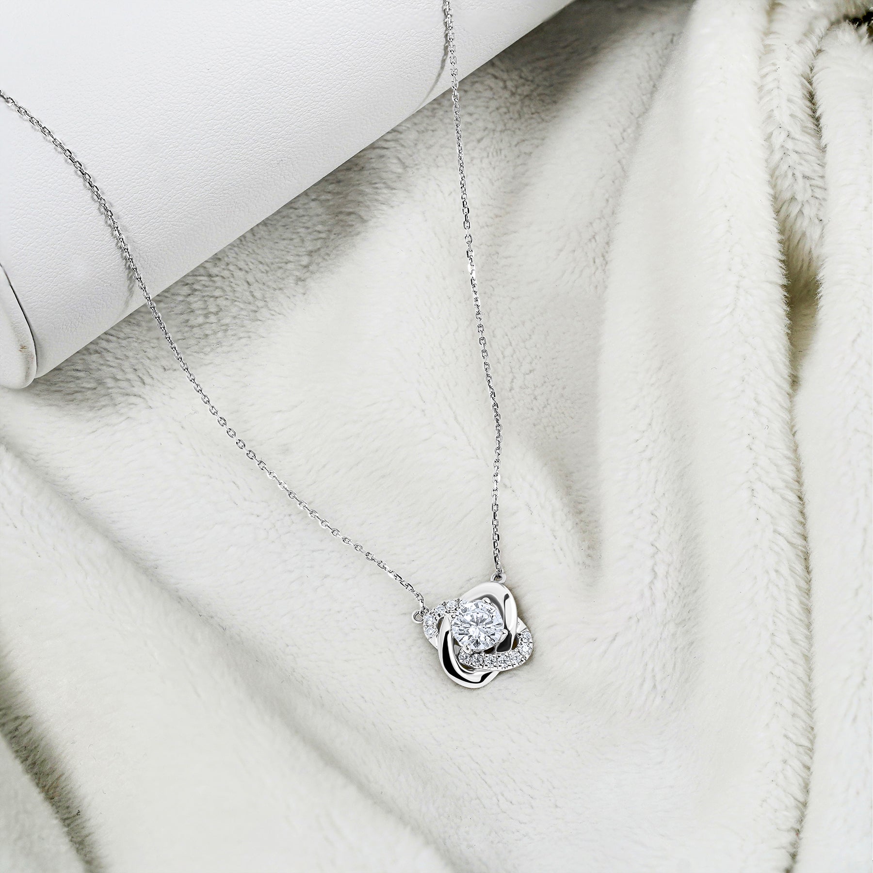 Discover the elegance and allure of Elegant 0.60TCW Round cut CVD Lab Grown Certified Lab Diamond Infinity Pendant Necklace in 18K White Gold Plating over Silver for Women, crafted with precision in sterling silver and adorned with an 18K White gold finish. These exquisite necklace feature 0.5 carat lab-grown CVD Certified Lab Diamonds, set in a unique infinity loop design that symbolizes endless love and connection. The center stones are surrounded with 0.1ct small moissanite. This necklace is not only a testament to timeless style but also reflect a commitment to environmental sustainability. The CVD Certified Lab Diamonds are ethically produced, offering a brilliant, guilt-free alternative to mined Certified Lab Diamonds at a fraction of the cost. Ideal for those who appreciate luxury but demand ethical sourcing, these earrings make a perfect gift for anniversaries, weddings, or as a special treat to yourself. They combine the best of modern jewelry trends—lab-grown Certified Lab Diamonds, eco-friendly, and hypoallergenic—with classic elegance.