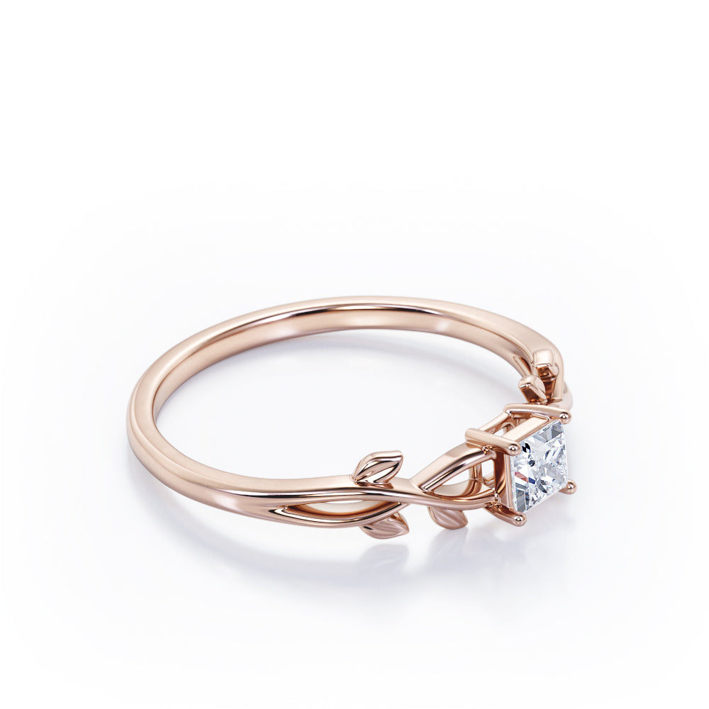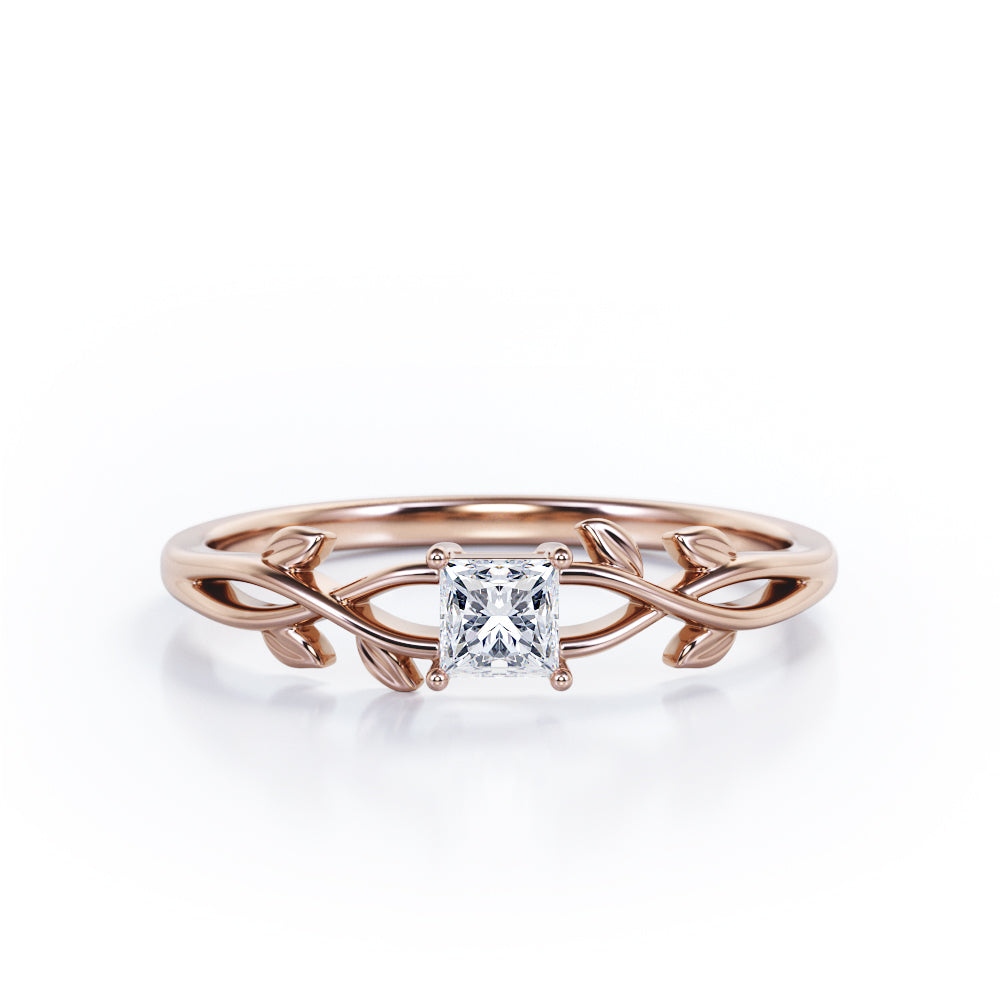 Certified Nature Inspired 0.50 Ct PrincessLab Diamond Engagement Ring
