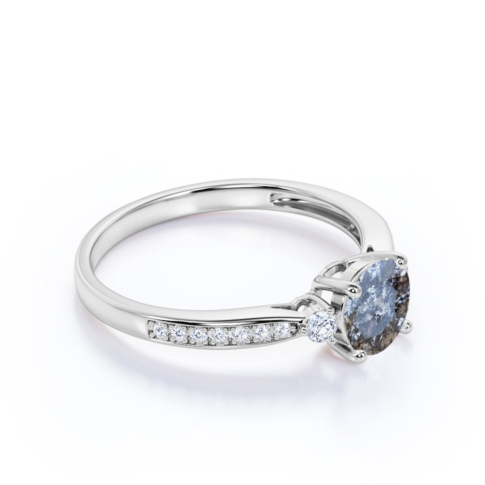 1 Ct Round Salt and Pepper Diamond Three Stone Engagement Ring