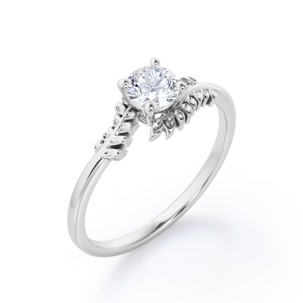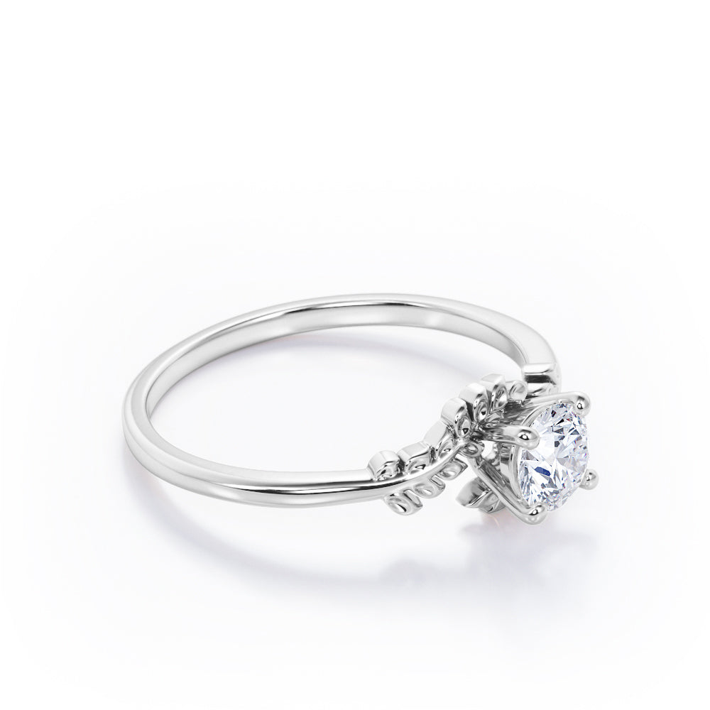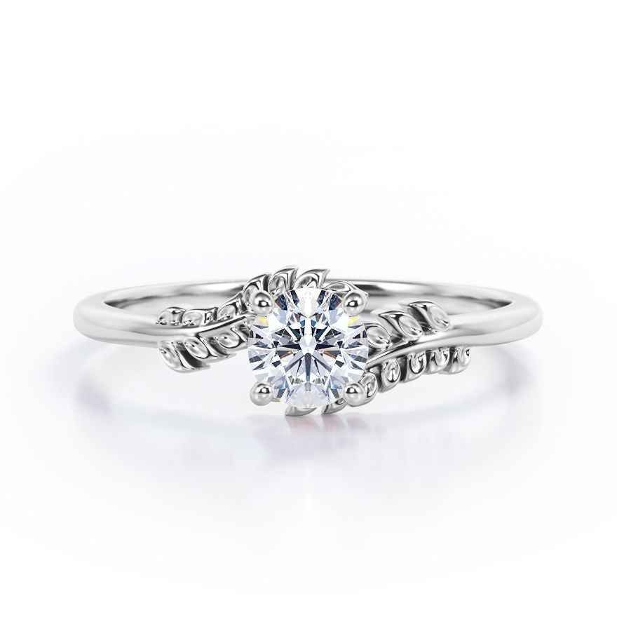 Leafy Bypass 0.5 TCW Round Shape Diamond Solitaire Engagement Ring in White Gold