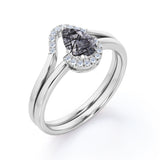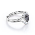 Lovely Modern Half Bezel 1.75 Carat Teardrop Shape and Diamond Contour Curved Pave Band Bridal Set Rings - Wedding Ring Sets