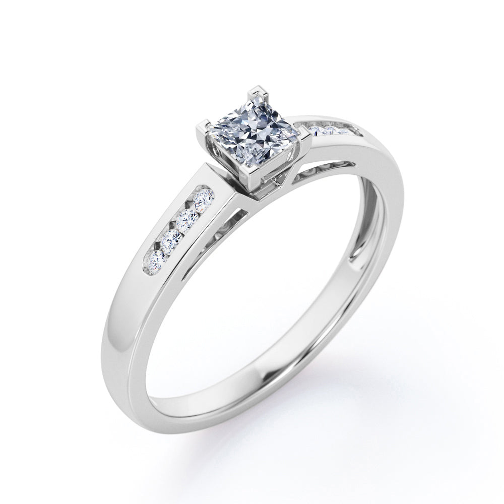 Calm your soul with this Minimalist 4-Prong Cathedral 0.35 TCW Princess Cut Diamond Mini Flush Pave Engagement Ring in 10K Rose Gold. Handcrafted with care into a wonderful princess cut by our most talented jewelers, this flawless gold diamond band ring comprises total 0.35 carat diamond on solid rose gold. Distinct and unusual, this diamond band is ideal for those who wish to express their charisma and uniqueness. This wedding anniversary ring will accentuate any outfit the wearer chooses to put on. Beautiful and affordable, this diamond ring for women is stunning and inexpensive, thanks to its reasonable price. If you are looking for a diamond ring for any special event, such as a birthday, an engagement, or a marriage proposal, this diamond promise ring for her is a great option if you are in search for something truly special to give to your special someone. Additionally, this affordable engagement ring for women can be customized to your own choice of metal colors: 10K rose gold, 10K white gold, 10K black gold, or 10K yellow gold. Let's show her how much you care by giving her this natural engagement ring.