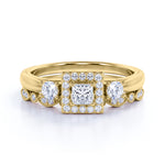 Be gratified by this 3 Stone Cathedral Modern Art Deco 1 Carat Princess Cut Diamond Milgrain Bridal Set - Wedding Set - 10K White Gold. This art deco diamond milgrain ring features .25 carat princess cut natural real diamond and .75 carat real genuine side diamonds. This modern diamond engagement ring can be customized to either Rose Gold, White Gold or Yellow Gold and either 10K, 14K or 18K. Also, as your satisfaction is our most priority, we will do our best to have your handmade jewelry be carefully and beautifully crafted by our expert jewelers. Crowned as the most popular precious stone on earth, this astonishing diamond ring will shower you with all charm and glamour. Being second to none, this natural diamond ring will create a fascinating look on your fingers. If you are looking for the perfect representation of love and commitment, this stunning diamond ring is right for you. Ornament your love story with this stunning diamond ring which will never go out of style. Own this diamond ring with unparalleled brilliance and stand out from the rest.