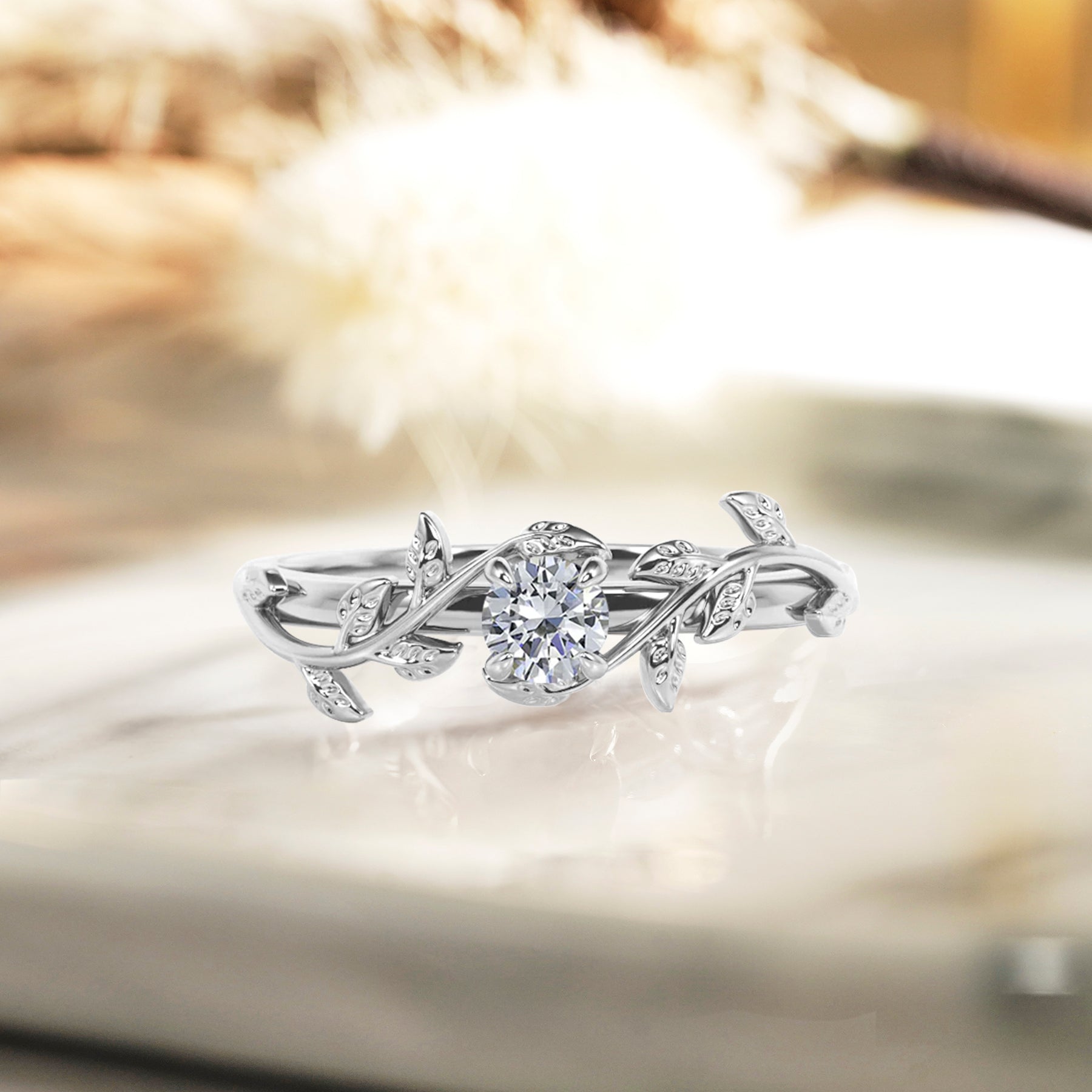 Nature Inspired 0.33 CT TDW Round Cut Diamond Solitaire Engagement Ring for Her