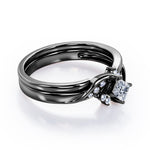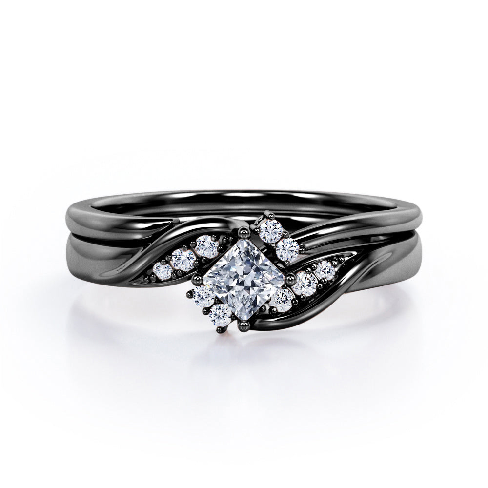 With these Petite Pave-Channel - 0.35 TCW Rhombus Princess Cut Diamond - Prong Tensioned Wedding Set - 10K White Gold, your significant other will be on cloud nine all the time. Handcrafted with care into a wonderful princess cut by our most talented jewelers, these wonderful cheap engagement rings consists of total 0.35 carat diamond on solid white gold. For those looking for something a little out of the ordinary, these cheap real diamond rings are an excellent choice. These diamond engagement rings for women are magnificent in its brilliance and clarity and will be an unmistakable addition to any jewelry collection. These gold diamond rings are stunning and inexpensive, thanks to its reasonable price. These natural diamond rings, the birthstone wedding ring set for April, symbolically represents love and dedication, is the best gift you can give to your significant other. These diamond wedding rings for women can be customized, either in 10K rose gold, 10K white gold, 10K black gold, or 10K yellow gold, upon customer request. Let's show her how much you care by giving her these natural diamond rings, and she will never regret it.