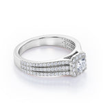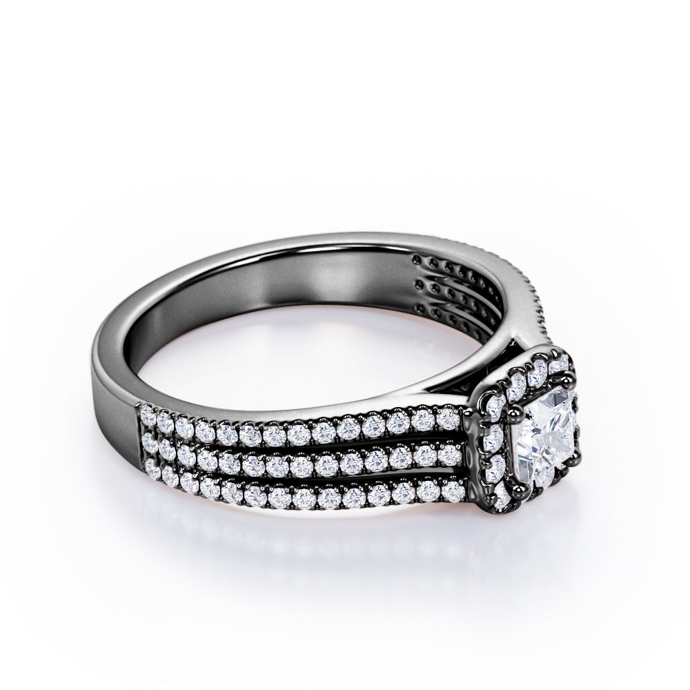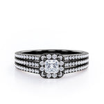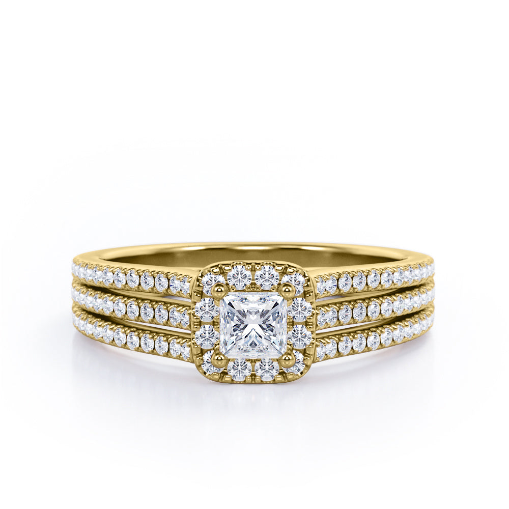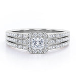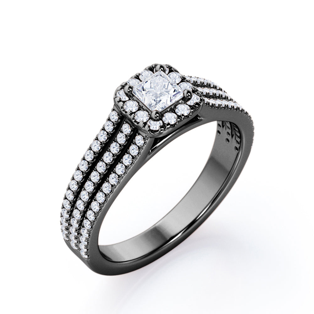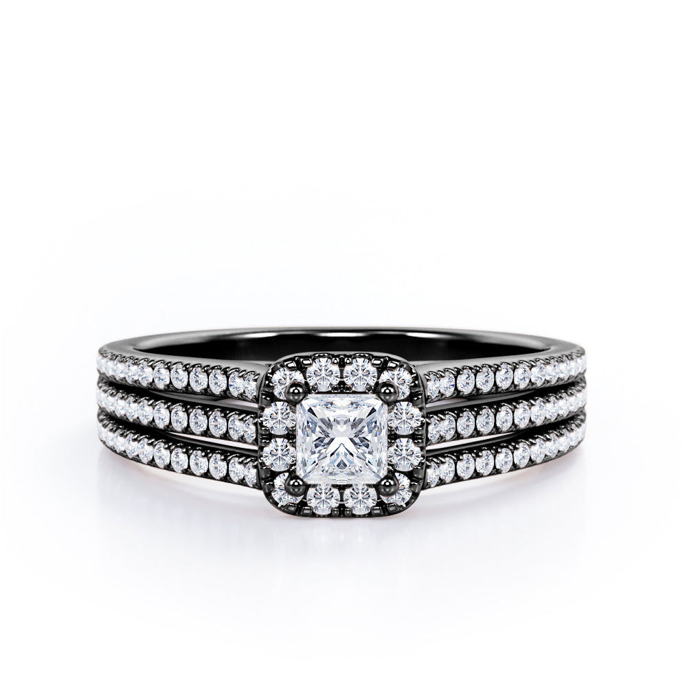 With this Triple Split-Shanked Pave - 0.55 TCW Princess Cut Diamond - Halo Engagement Ring - 10K White Gold, you can make your proposal day unforgettable. Hand-cut with deftness into a lovely shape princess cut by our most talented jewelers, this exceptional real diamond ring for women features total 0.55 carat diamond on solid white gold. Distinct and unusual, this real diamond wedding ring is an excellent choice. This diamond ring is magnificent in its brilliance and clarity and will be an unmistakable addition to any jewelry collection. This affordable engagement ring for women is a great choice for any woman's jewelry collection. Our diamond wedding ring, the birthstone ring for April, symbolically represents love and dedication, is the best gift you can give to your significant other. Also, this diamond engagement ring can be customized, either in 10K white gold, 10K rose gold, 10K yellow gold, 10K black gold, upon customer request. Let's show her how much you care by giving her this inexpensive engagement ring.