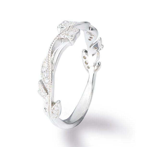 Art Deco Milgrain 0.25 Ct Round Cut Vine Wedding Band