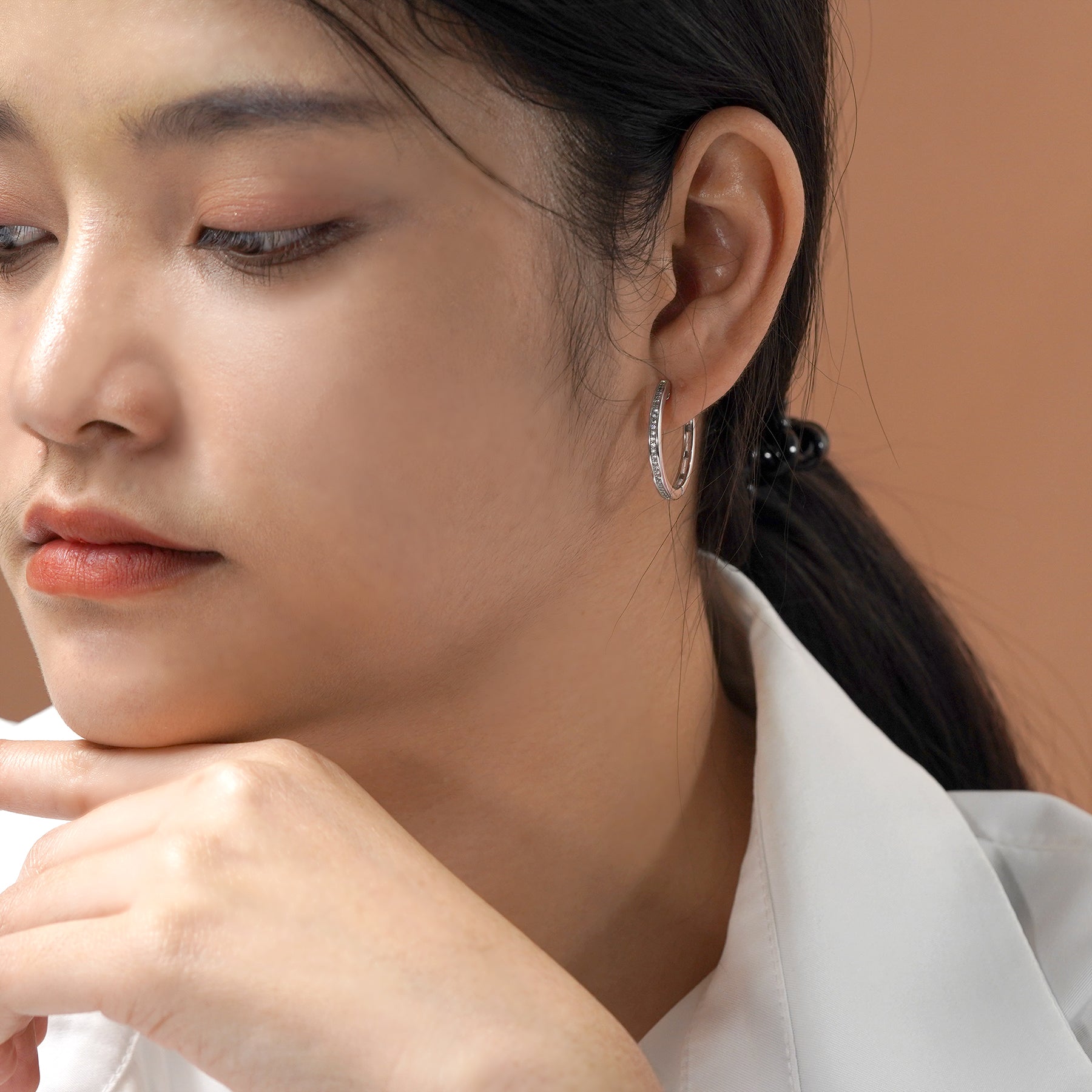 Introducing our exquisite Sparkling Pave Channel Set Fashion Hoop Earrings for Women in Stainless Steel - Gift for Lover. These stunning earrings are the perfect addition to your everyday jewelry collection, elevating any outfit with effortless elegance. Intended as a luxury affordable jewelry, each hoop earring features a dazzling pave channel set design, meticulously set with shimmering cubic zirconia stones. The brilliance of these stones captures the light, creating a mesmerizing sparkle that will surely turn heads. Whether you're dressing up for a special occasion or adding a touch of glamour to your daily ensemble, these cubic zirconia earrings hoops are versatile and timeless. They effortlessly blend sophistication with contemporary style, making them a good choice for those looking for fashion hoop earrings.