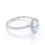 1.25 Carat oval cut Moissanite Halo Engagement Ring in 18k White Gold Over Silver