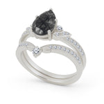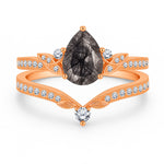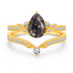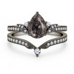 1.35 Ct Pear Cut Milgrain Black Rutilated Quartz Bridal Set