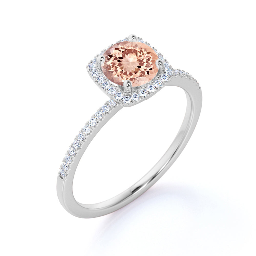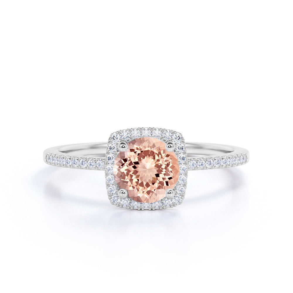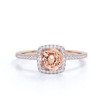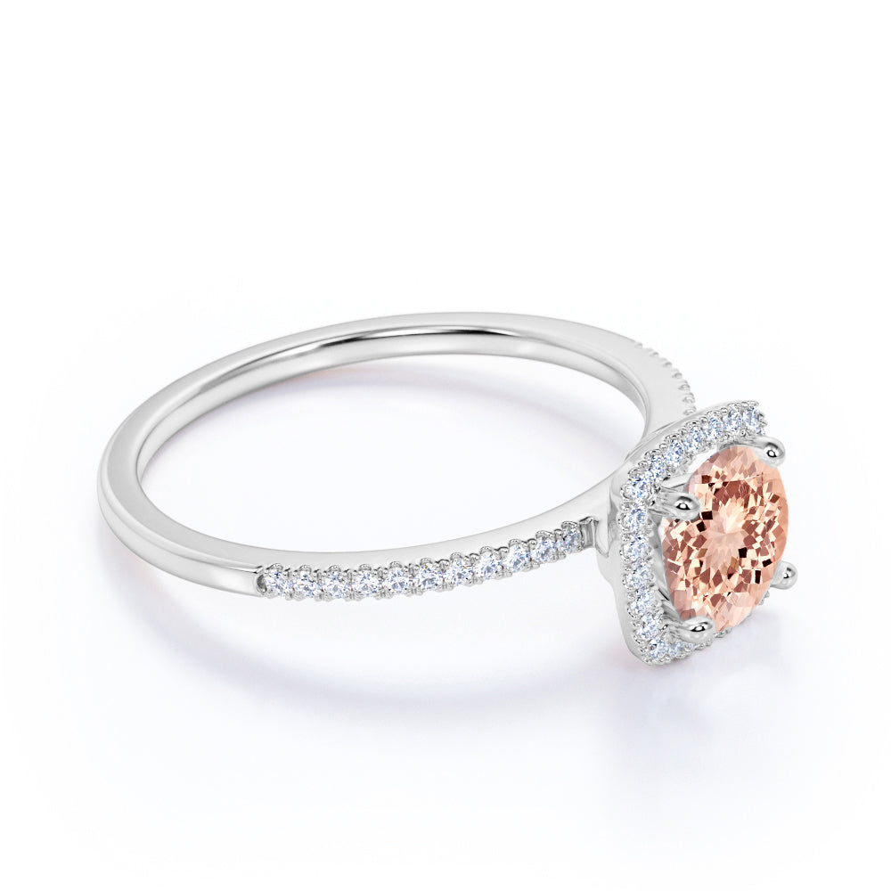 1.50 ct Round Morganite Halo Pave Engagement Ring