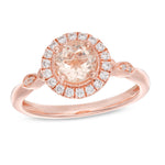 1.75 Carat Round Brilliant Morganite and Moissanite Milgrain Art Deco Engagement Ring On 18K Rose Gold Over Silver