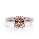 1.75 Carat Cushion cut Real Morganite and Moissanite Bridal Wedding Ring Set with Engagement Ring and Wedding Band in 18k Gold Over Silver