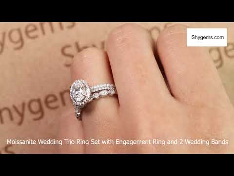 Art Deco 2 Carat Oval cut Real Moissanite Wedding Trio Ring Set with Engagement Ring and 2 Wedding Bands in 18k Gold Over Silver. This ring features 1 carat Oval cut Moissanite center stone and 1 carat moissanite side stones, for a total 2 carat. The bridal wedding ring is made with real and high quality Moissanites that can be a perfect alternative to diamond rings as moissanites have almost the same durability and quality as with diamonds that will last for a lifetime. The colorless white moissanite is of highest clarity and the moissanite engagement ring is made on 18k Gold over silver. The very Beautiful engagement ring, comes with the real and high quality moissanites all hand crafted beautiful to make the perfect Moissanite engagement ring for her. The moissanite bridal wedding ring set consist of main moissanite engagement ring and 2 matching wedding ring bands. Your beautiful jewelry ring comes with a 30 days full refund policy. The beautiful Moissanite wedding engagement ring set for women will make the perfect gift for her, whether you are looking for engagement, valentine's day, mothers day or anniversary gift.
