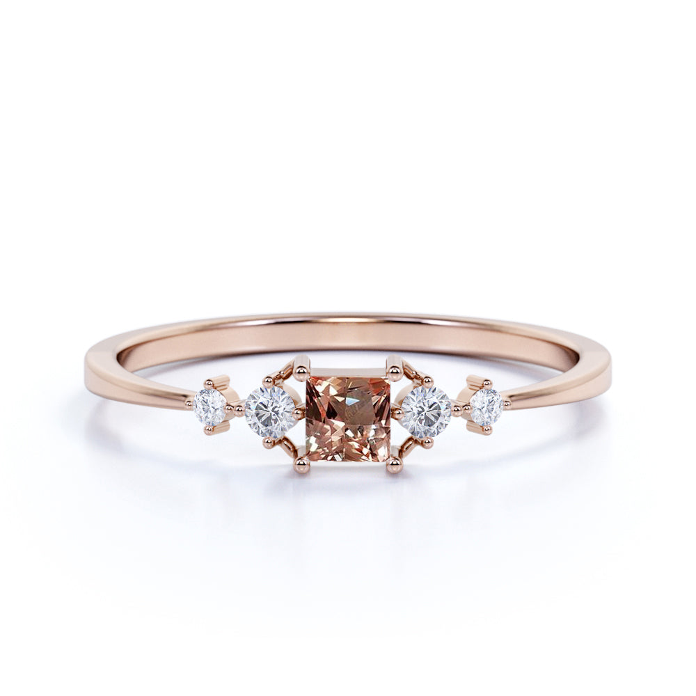 Bestselling 0.49 Carat Princess Cut Australian Brown Pink Morganite and Diamond Petite Engagement Ring in Rose Gold