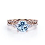Antique 1.75 ct Round Aquamarine Pave Bridal Set
