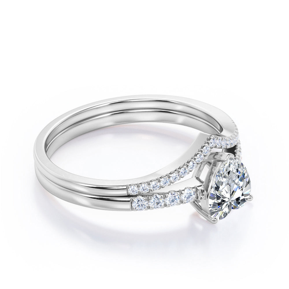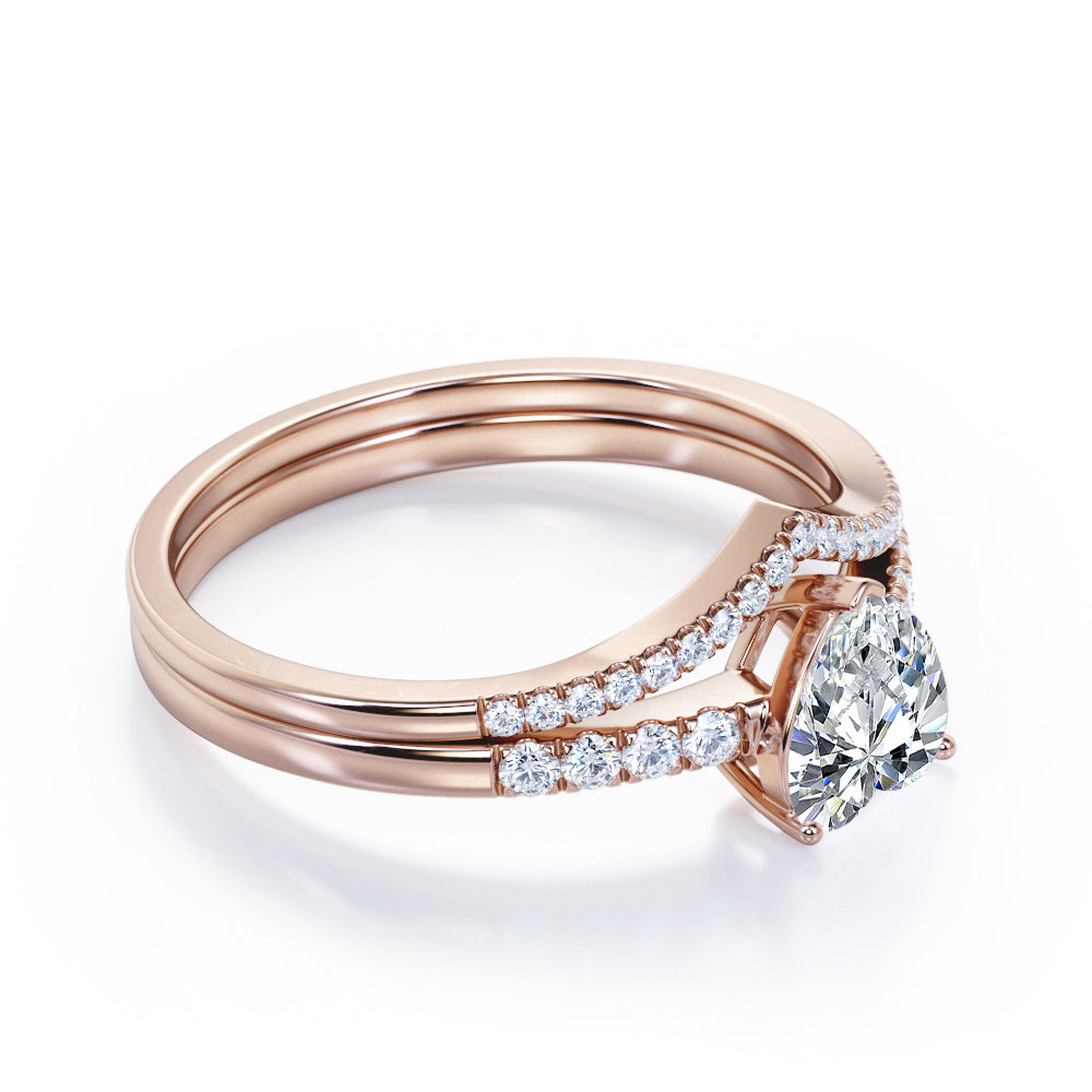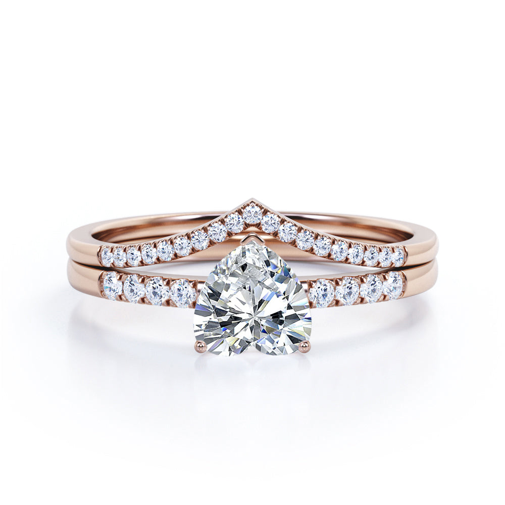 Cherished 0.7 carat Heart Moissanite and Diamond Bridal Ring Set in Rose Gold
