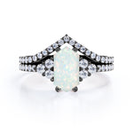 Chevron Pave Set 1.55 Carat Hexagon Cut White Fiery Opal And Diamond V Shaped Wedding Ring Set In Black Gold