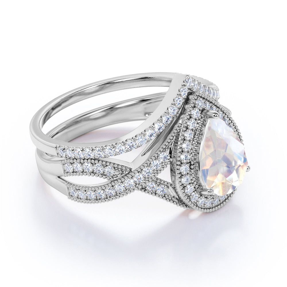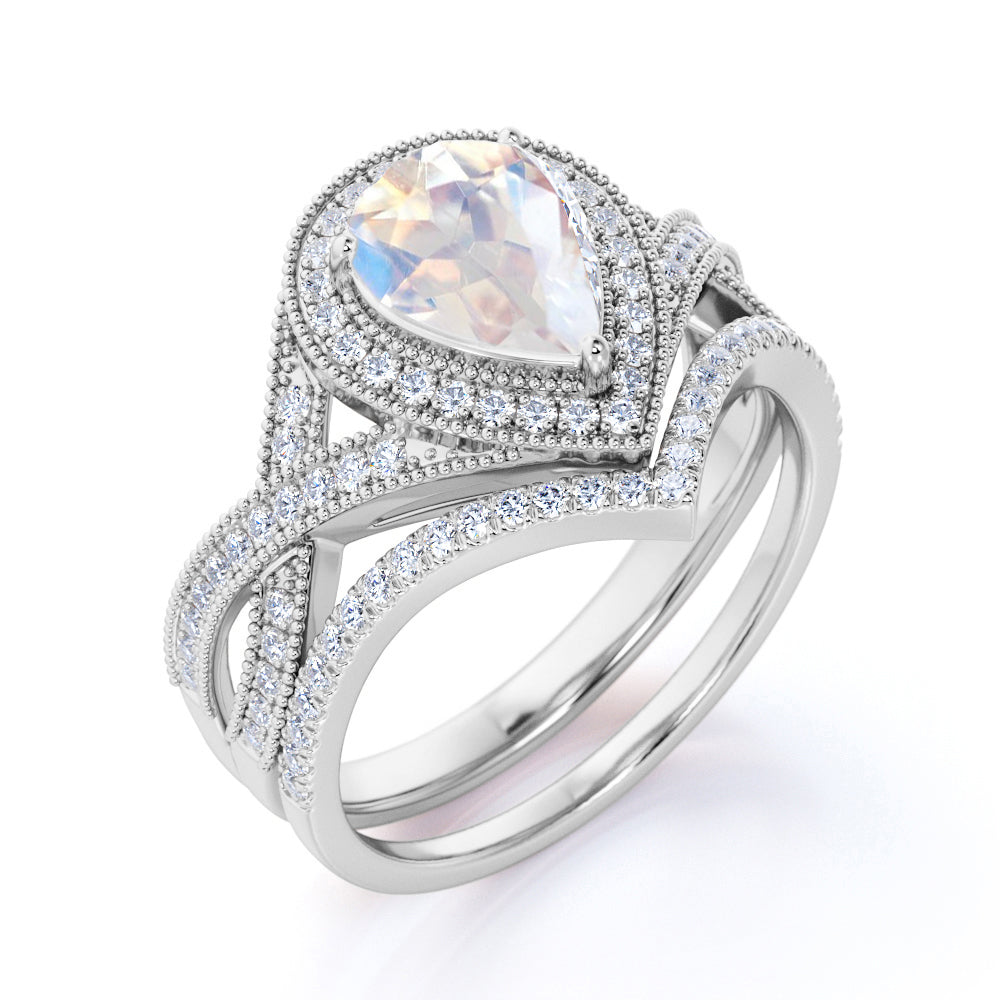 1.5 ct Pear Rainbow Moonstone Infinity Wedding Set