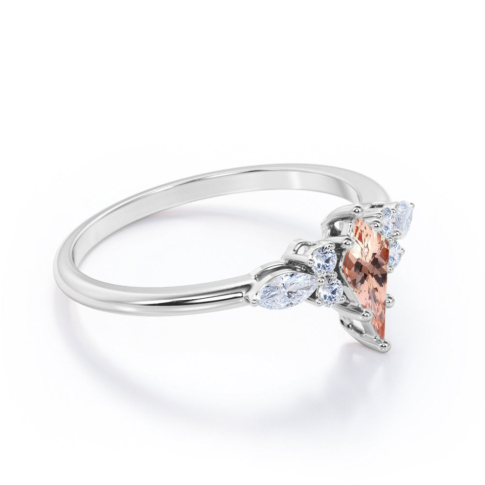 Classic Seven Stone 0.55 carat Kite Morganite and Moissanite Dainty Engagement Ring in White Gold