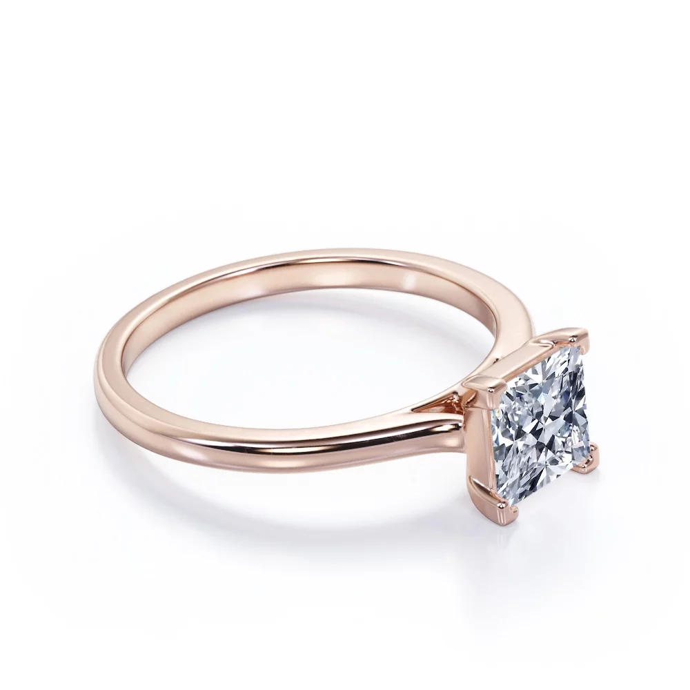 Sparkling Solitaire - 1 Carat Princess Cut Moissanite - Prong Promise Ring - 18K White Gold Plating over Silver