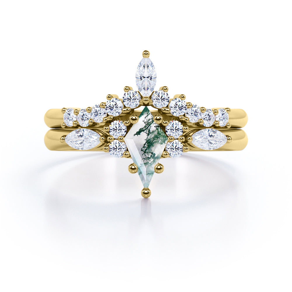 Crowned 1.25 Carat Green Moss Agate Bridal Set