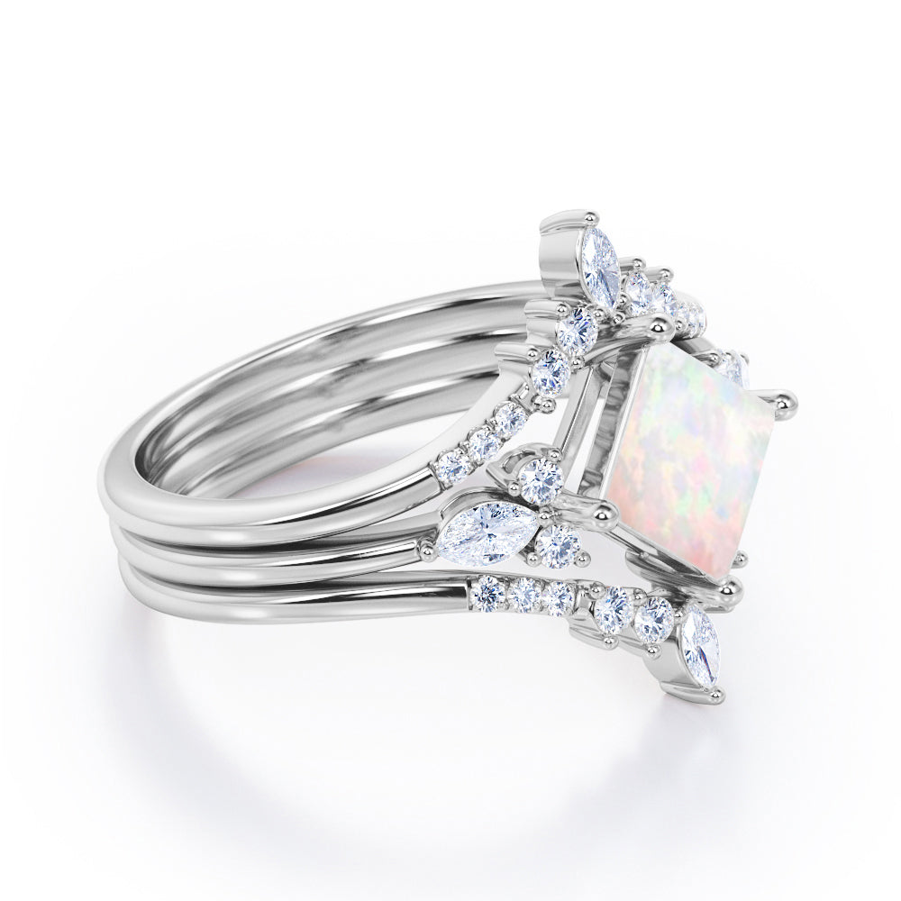 1.25 Ct Princess Cut Lab Created Opal Crown Trio Set