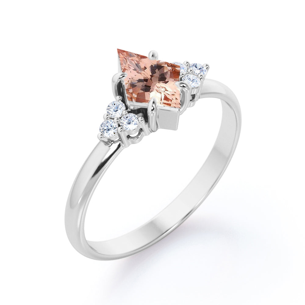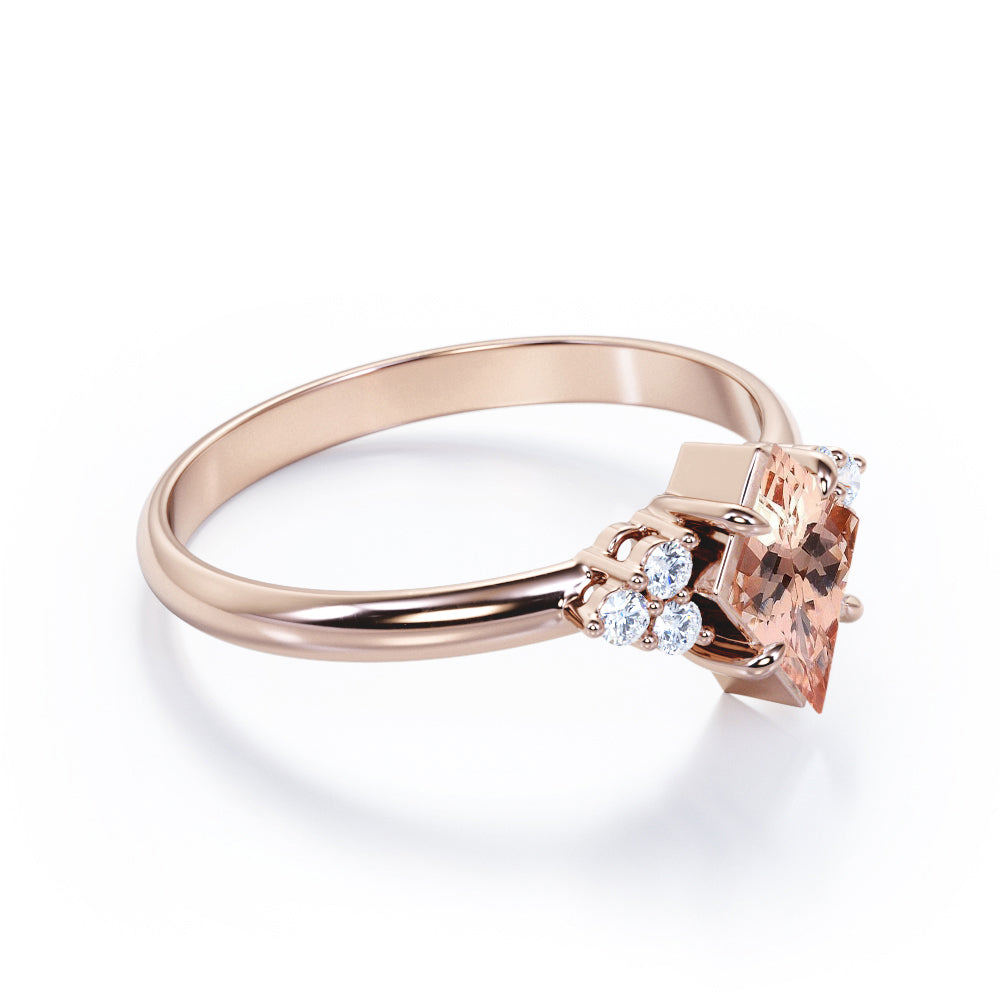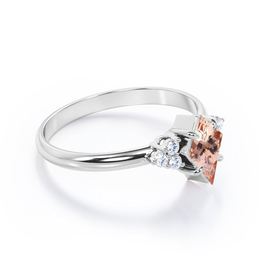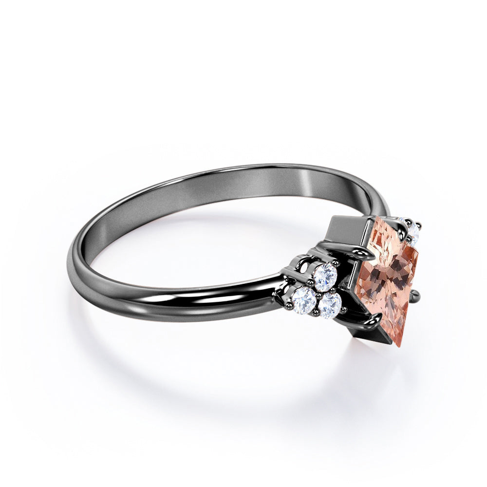 Edgy 0.55 carat Kite Morganite and Moissanite Engagement Ring in Rose Gold
