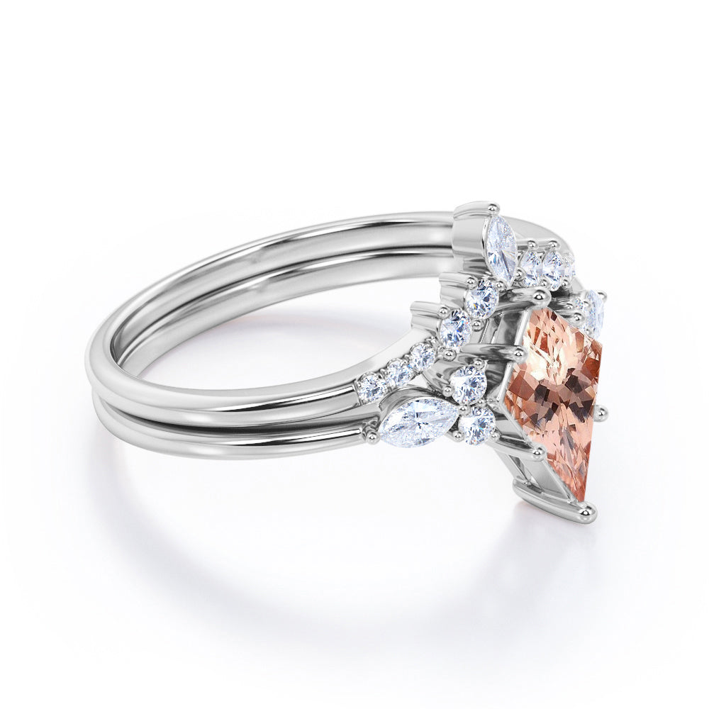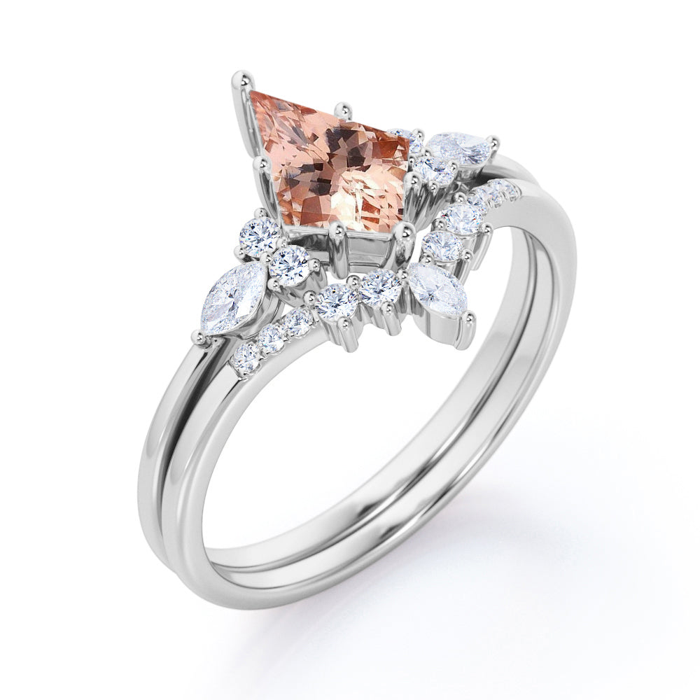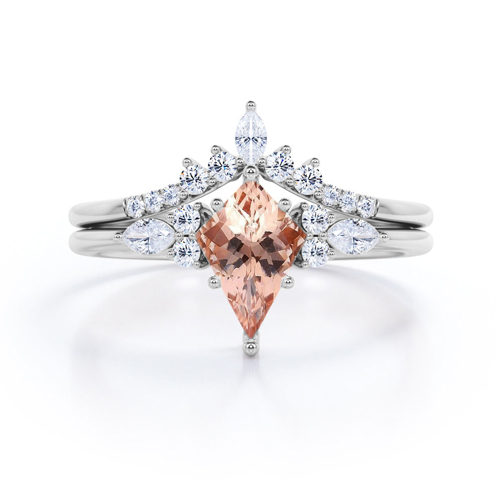 Fashionable 0.65 carat Kite Morganite and Moissanite Bridal Ring Set in White Gold