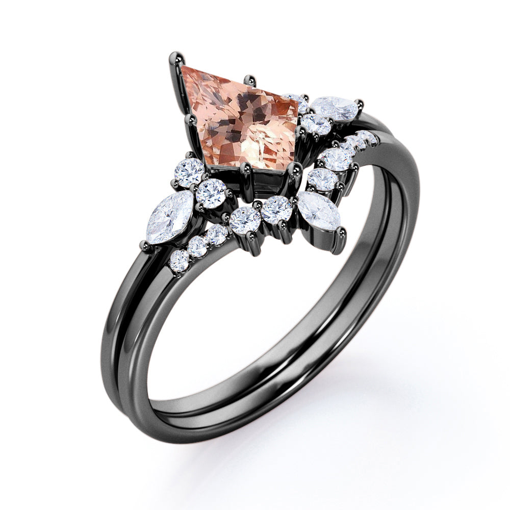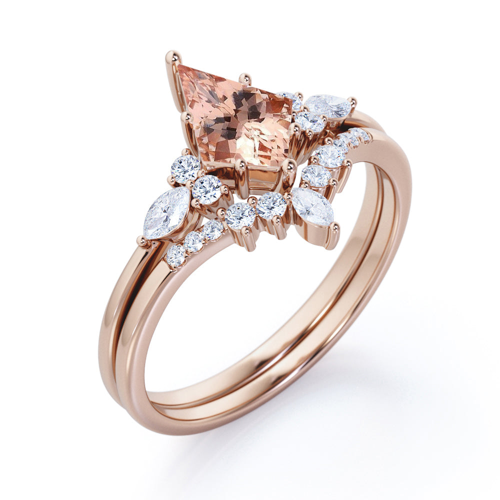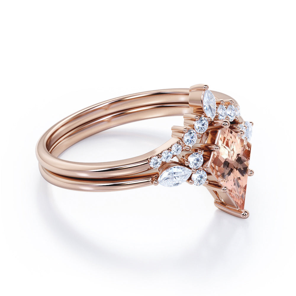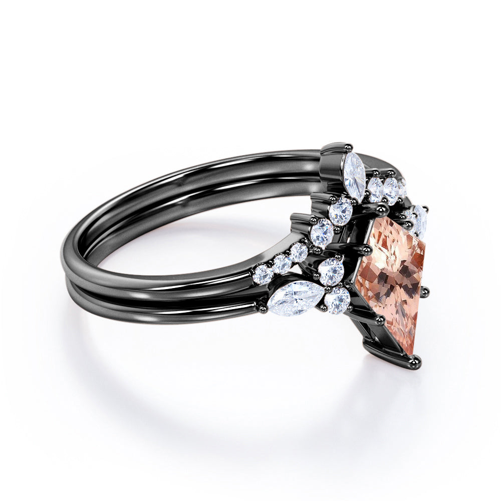 Fashionable 0.65 carat Kite Morganite and Moissanite Bridal Ring Set in White Gold