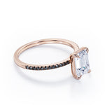 Four Prong - 1.25 TCW Emerald Cut Moissanite with Lab Created Black Diamond - Engagement Ring with Pave Accents in White Gold