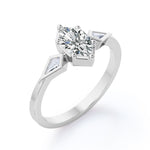 Please note that the type of side stone occurs according to metal type; if the band is silver, the side stone of the ring will be Moissanite and if the band is gold, diamond will be employed as side stone.