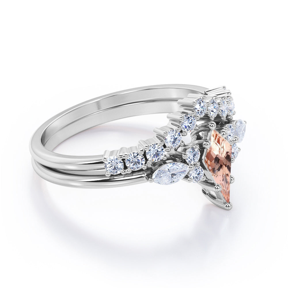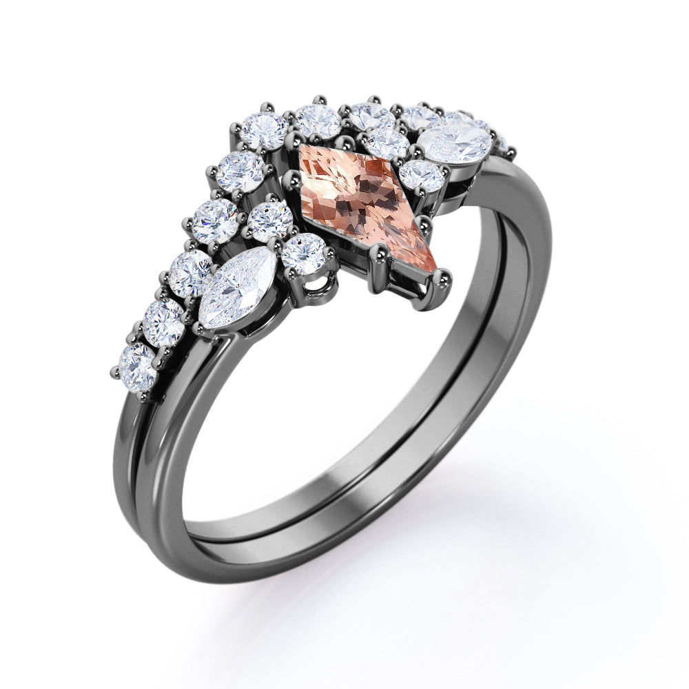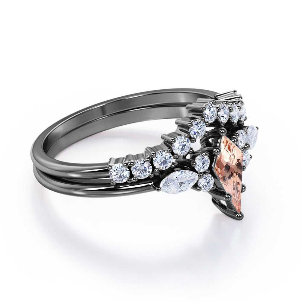 Glittery 0.65 carat Kite Morganite and Moissanite Classic Bridal Ring Set in Black Gold