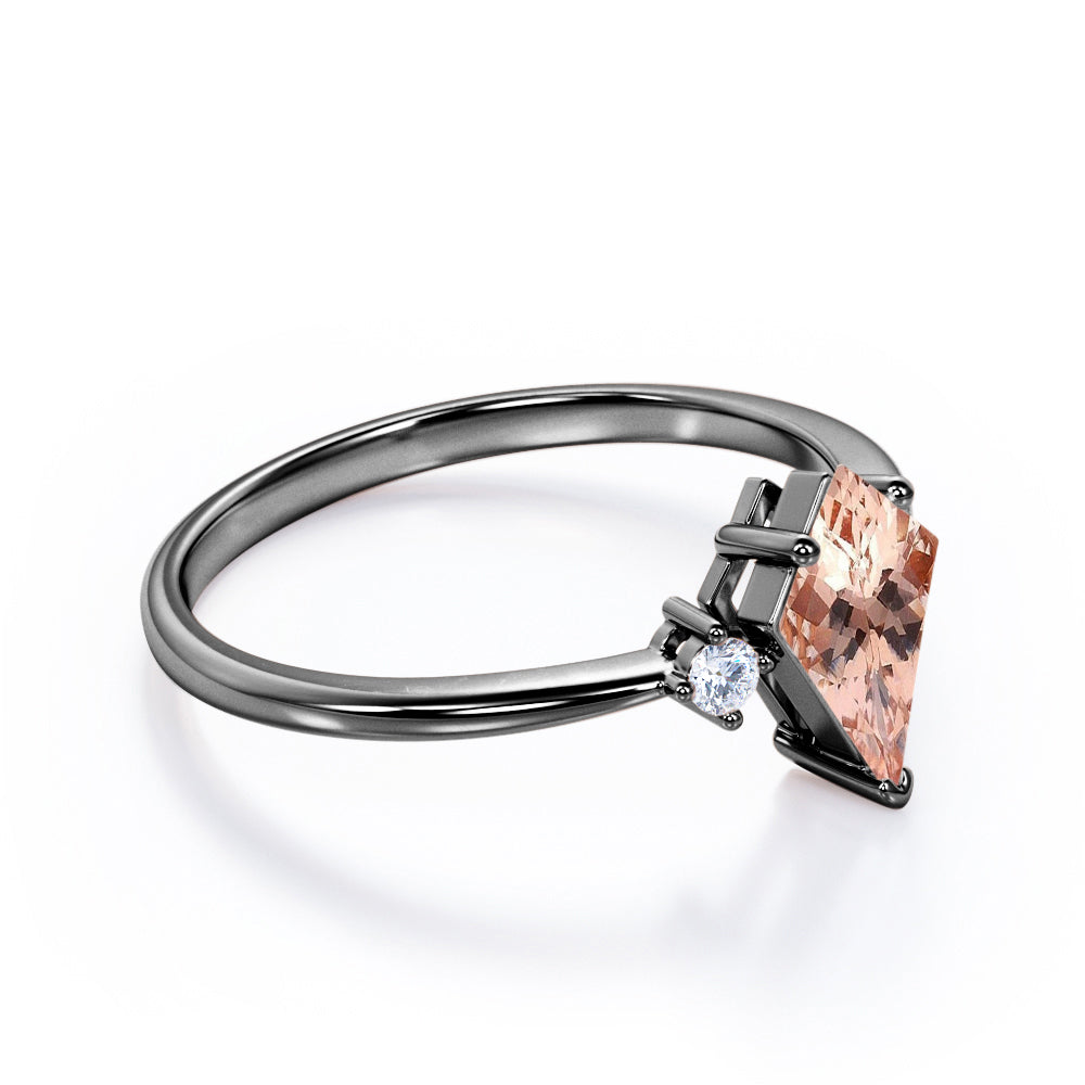 Minimalist Three Stone 0.55 carat Kite Morganite and Moissanite Engagement Ring in Rose Gold