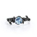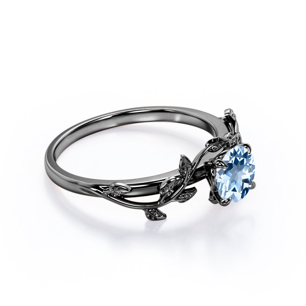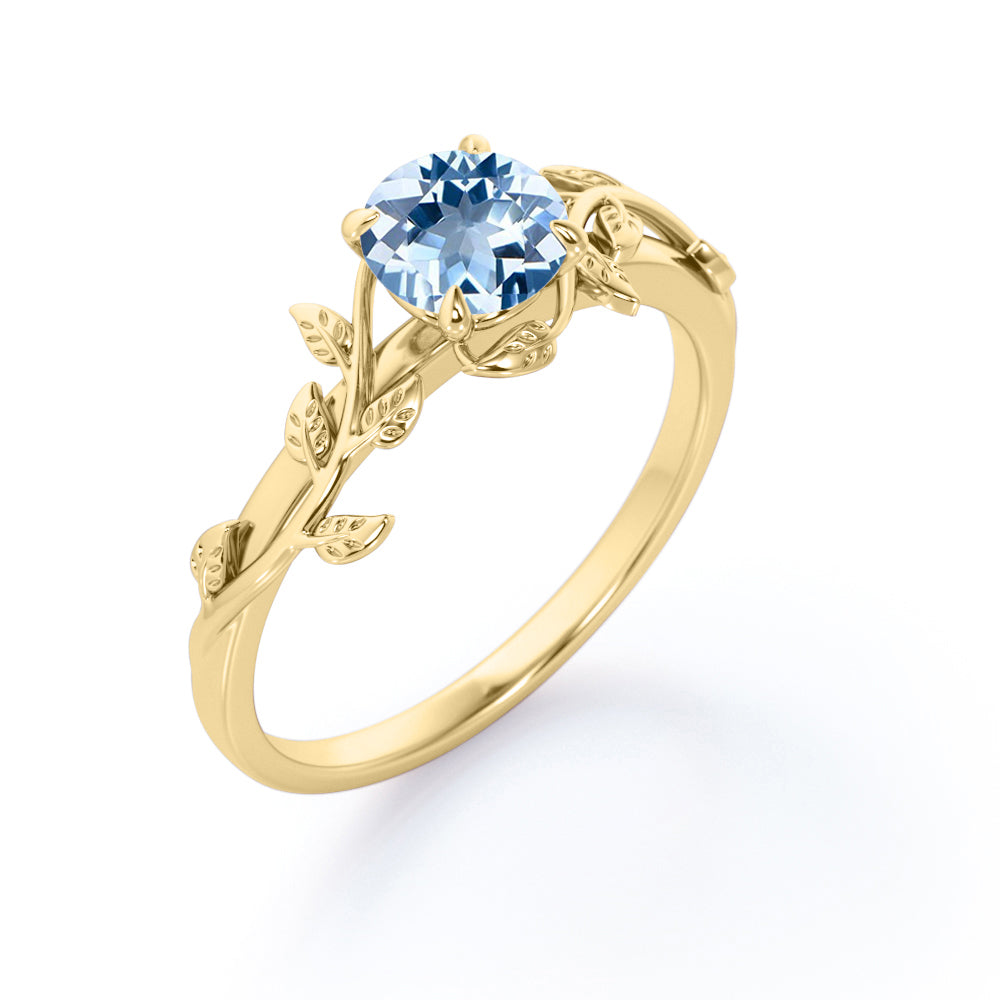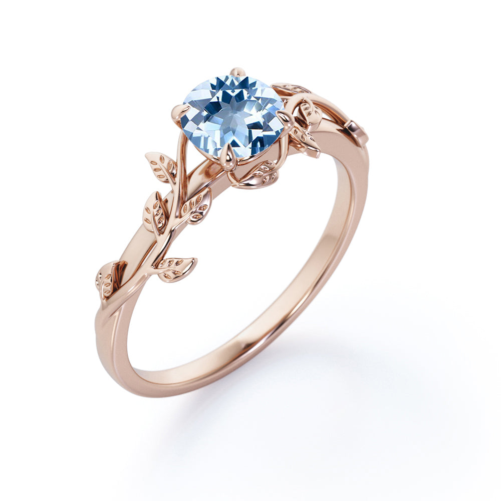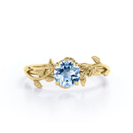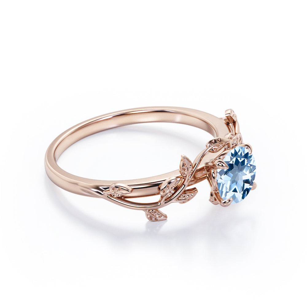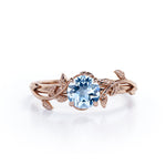 Solitaire 0.50 ct Round Aquamarine Leaf Engagement Ring