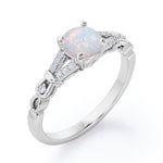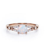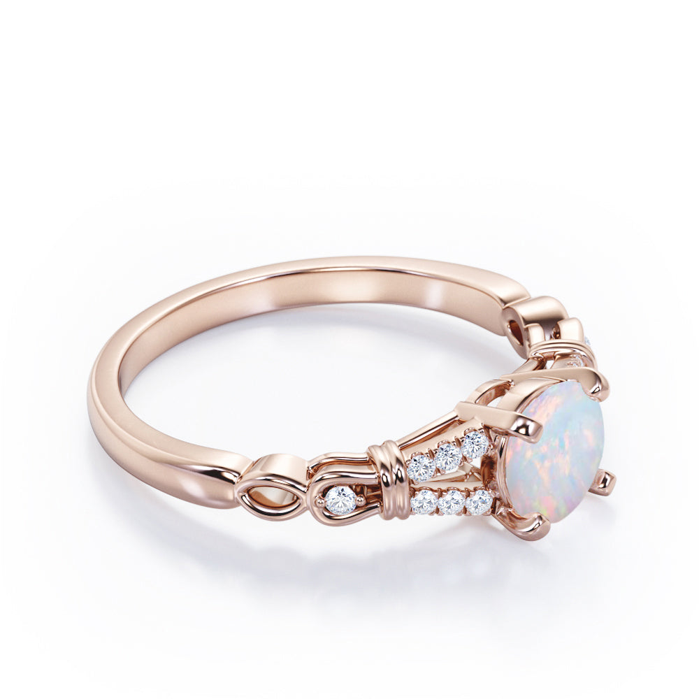 Split Shank 0.6 carat Round Opal and Diamond Engagement Ring in Rose Gold