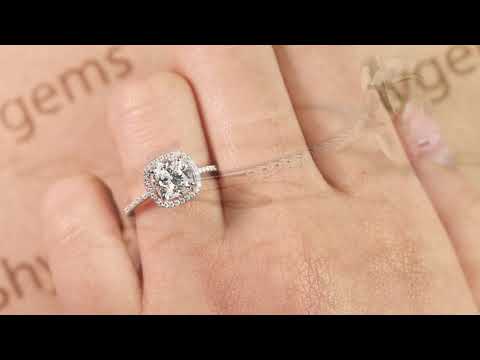 1.25 Carat Cushion Cut Moissanite Halo Engagement Ring Set