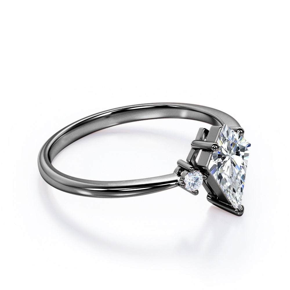 Trio Stone 0.55 carat Kite Moissanite and Diamond Sleek Engagement Ring in Black Gold